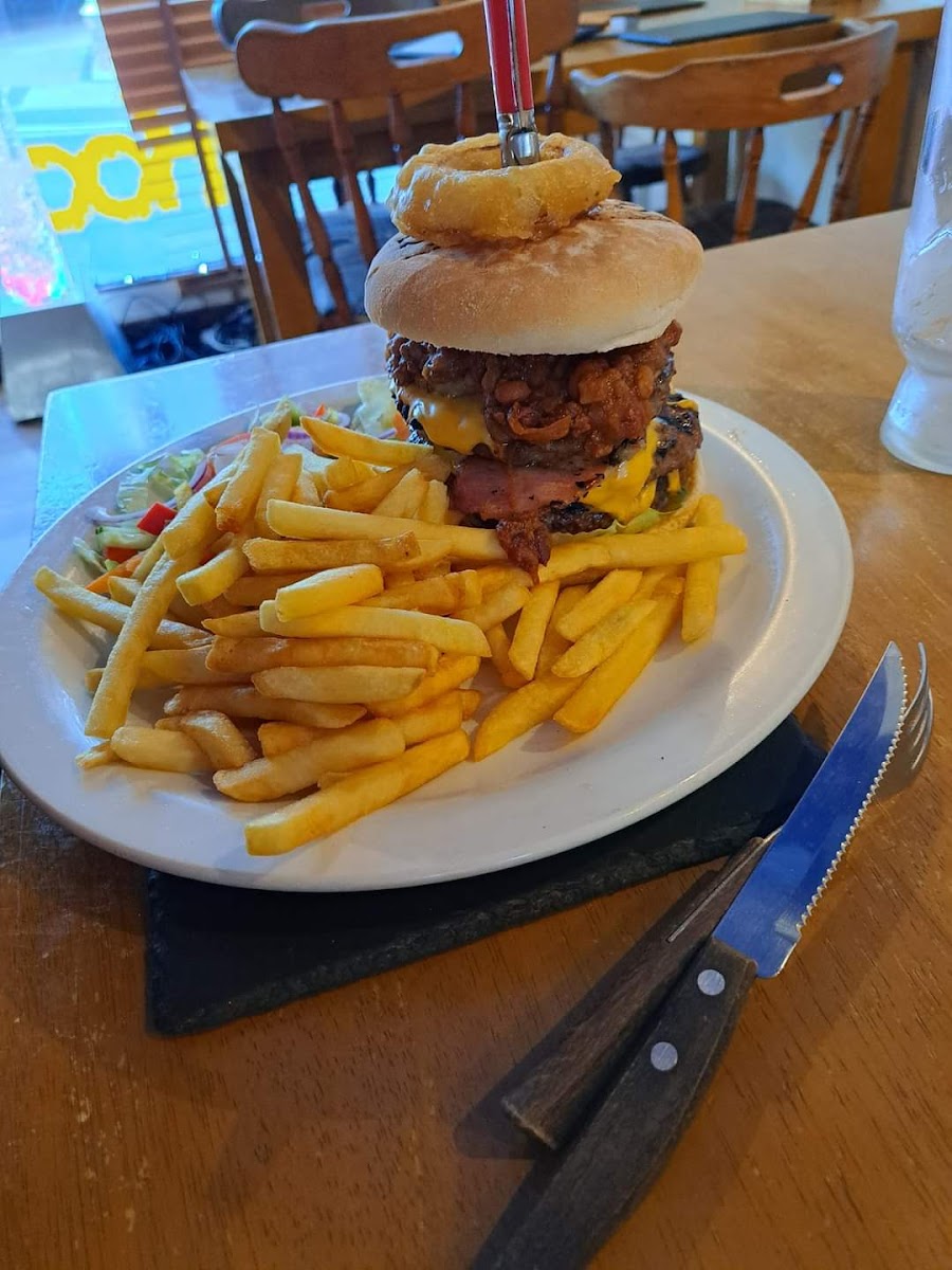Brilliant restaurant massive portions of food was quite busy when we arrived sat inside very hot day so asked to go outside which was no problem lovely big decked garden really enjoyed great food and service highly recommend